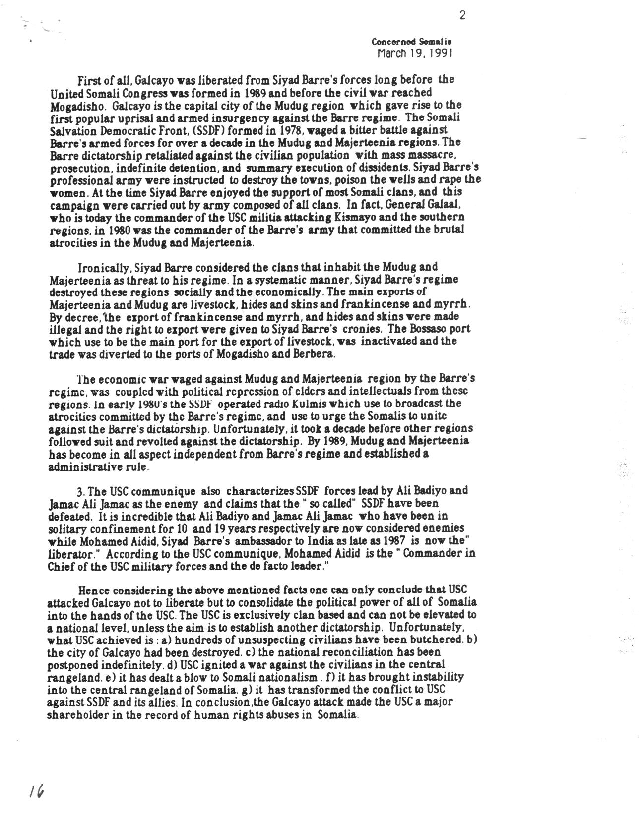 First of all, Galkayo was liberated from Siyad Barre's forces long